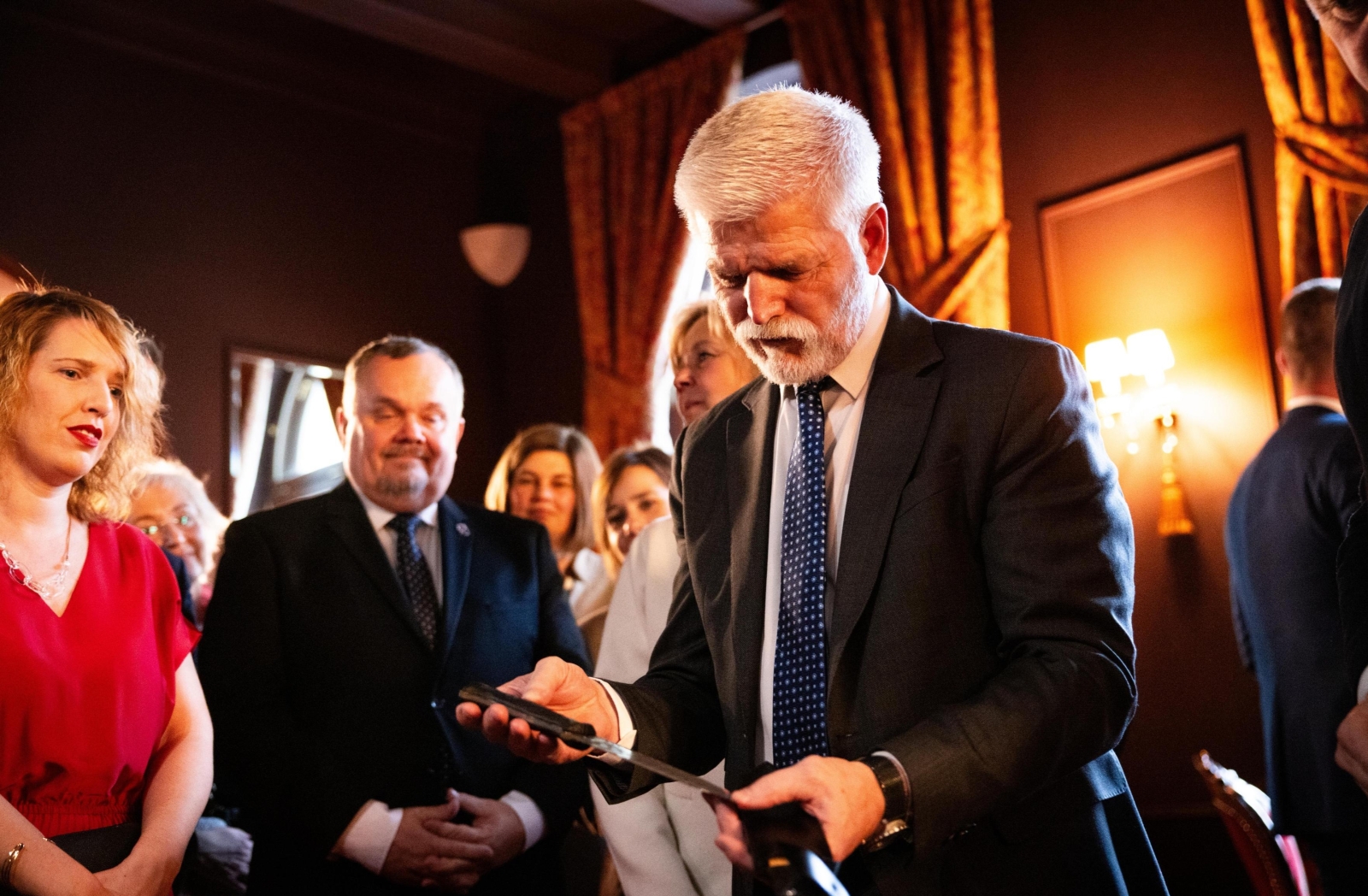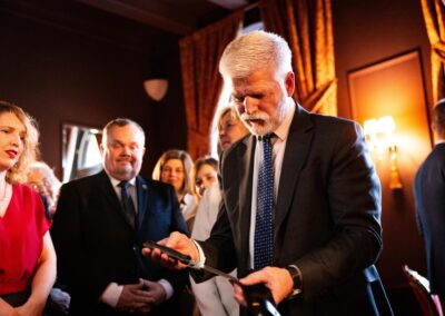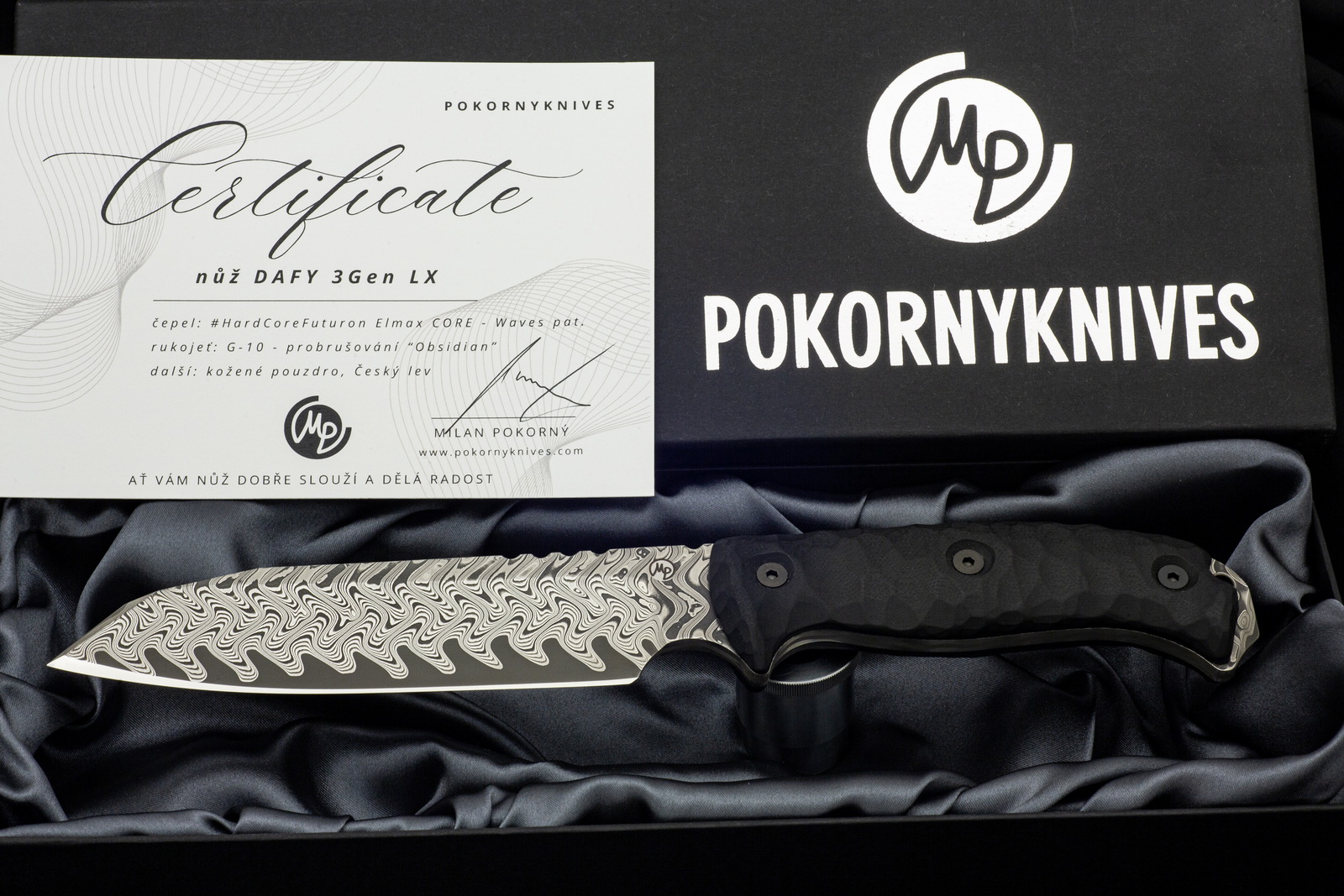A gift for the president of the Czech Republic from the Liberec Region. The DAFY 3Gen – LX Elmax CORE in the Waves pattern, made from our stainless damascus steel by knifemaker Milan Pokorny.